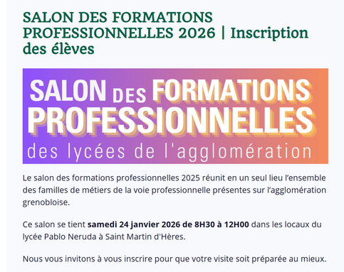 A ne pas manquer : le salon des formations professionnelles (toutes les formations pro de l'agglomération !!!!) le 24 Janvier de 8h30 à 12h30